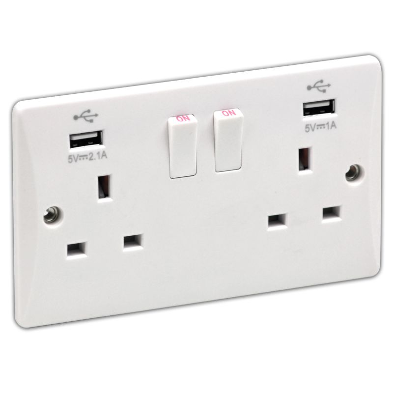 - Twin plate 2 gang 3 pin double pole switched socket 2 x usb ports