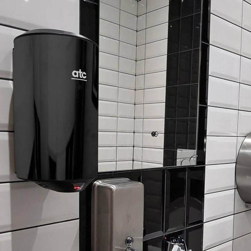 The stainless stell ATC Cub, finished in black brings a smooth and unique shape to the high-speed hand dryer market which is popular with designers. The compact dimensions make sure that this hand dryer will take up limited wall space.