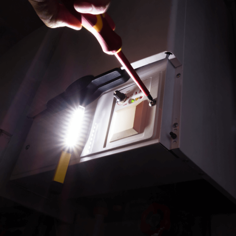 This 8 LED pocket inspection light by CK Tools produces super-bright flood beam illumination while stood upright, laid flat, or suspended via its magnetic clip, making it ideal for close proximity hands-free applications.