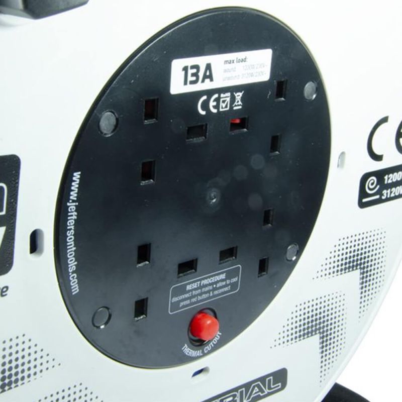 The Jefferson Cable Reels are designed with an aluminium frame fore outstanding durability with a thermal cut-out fitted. It is complete with a cable to enable neat and tidy storage. It is also fitted with a reel-lock screw which helps keep the cable reel from unwinding. Additionally, it has an winding handle which is easy to use and allows strong grip.