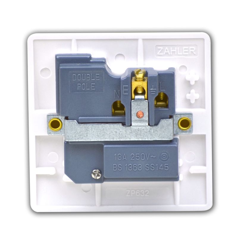 13A 1 gang switched DP socket. Part of the Pearl slimline range.
