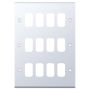 Polished chrome 12 aperture modular plate from the Selectric GRID360 7M-PRO range. Compatible with GRID360 modules and dimmer cover plates.