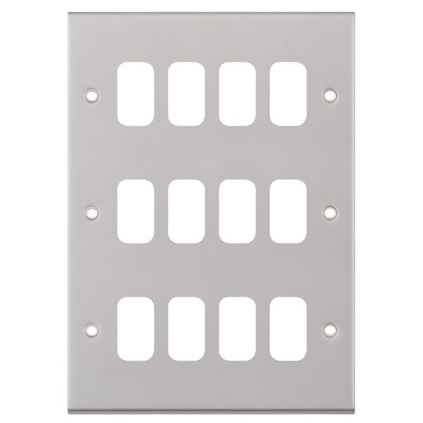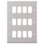Satin chrome 12 aperture modular plate from the Selectric GRID360 7M-PRO range. Compatible with GRID360 modules and dimmer cover plates.