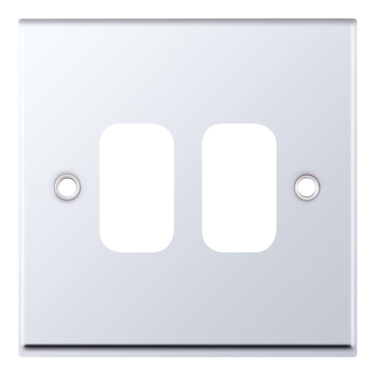 Polished chrome 2 aperture modular plate from the Selectric GRID360 7M-PRO range. Compatible with GRID360 modules and dimmer cover plates.