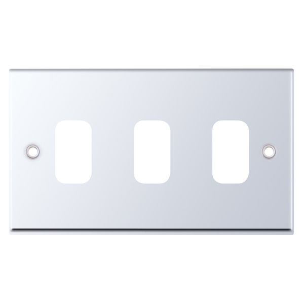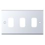 Polished chrome 3 aperture modular plate from the Selectric GRID360 7M-PRO range. Compatible with GRID360 modules and dimmer cover plates.