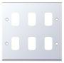 Polished chrome 6 aperture modular plate from the Selectric GRID360 7M-PRO range. Compatible with GRID360 modules and dimmer cover plates.