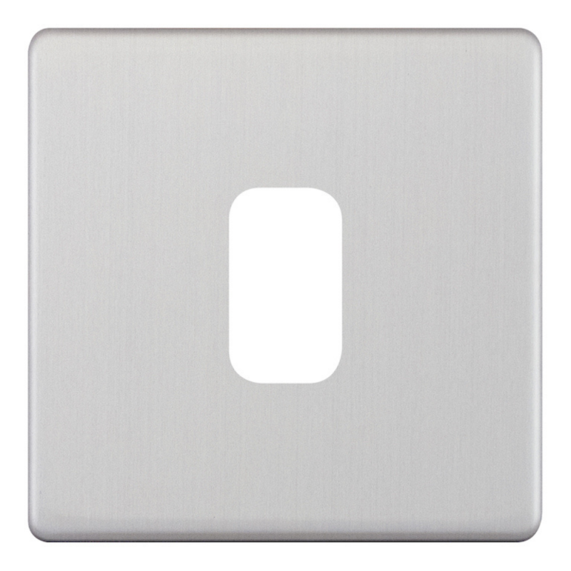 The Selectric 1 Aperture Modular Plate 5M-PLUS Satin Chrome is designed for use with all Selectric GRID360 modules, offering a sleek and modern solution for modular wiring accessories. Part of the GRID360 range, it is available in multiple plate finishes with apertures from 1 to 12 to complement all current Selectric ranges. Modules screw directly into the plate for quick and easy installation with no need for yokes, while the screwless click-on front plate provides a clean, contemporary finish.
