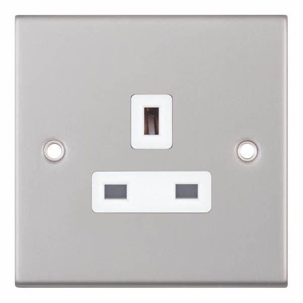 1 Gang 13 Amp Socket Unswitched with White Insert Selectric Sockets Satin Chrome