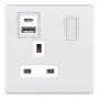 1 Gang 13 Amp Socket USB Type C & A with White Inserts Selectric Sockets Matt White
