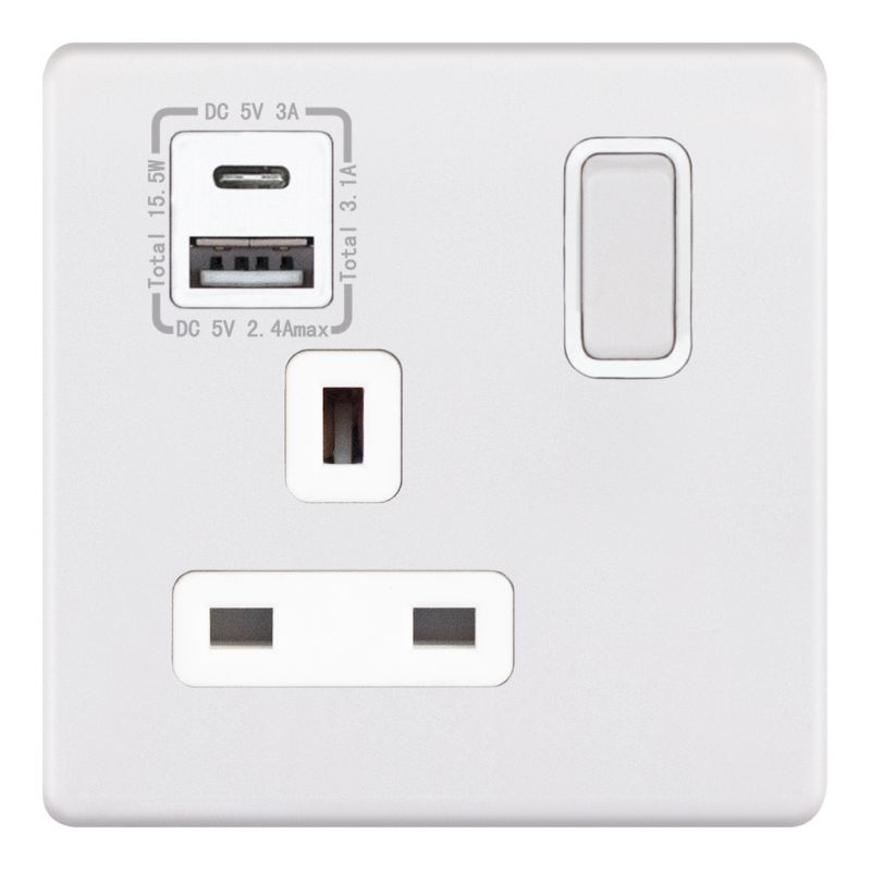 This is the Selectric 1 Gang 13 Amp Socket USB Type C & A Matt White with White Inserts.