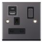 1 Gang 13 Amp Socket with 1 x USB Type C & 1 x USB Type A Port (3.1A) Selectric Sockets Black Nickel