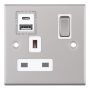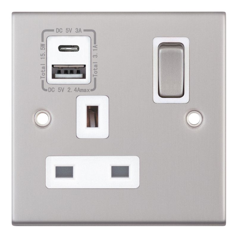 1 Gang 13 Amp Socket with 1 x USB Type C & 1 x USB Type A Port (3.1A) Selectric Sockets Satin Chrome