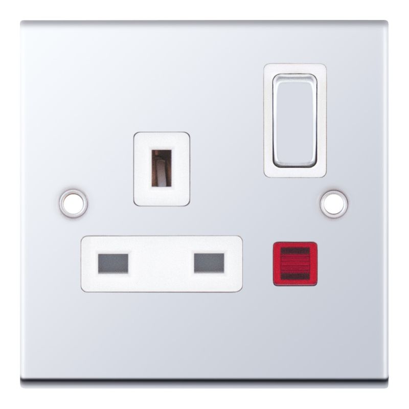 1 Gang 13 Amp Socket with Neon DP Switched White Insert Selectric Sockets Polished Chrome