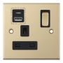 1 Gang 13 Amp Socket with USB Type C & x USB Type A Port (3.1A) Selectric Sockets Satin Brass