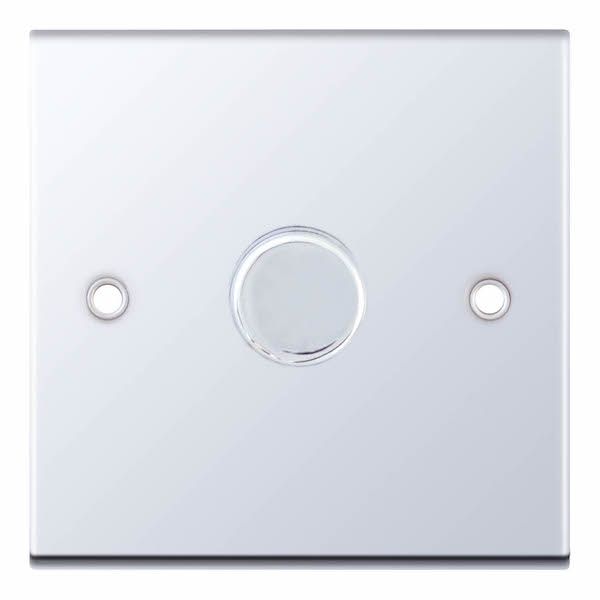 The Selectric 1 Gang 2 Way Dimmer 5–100W Push On/Off in polished chrome offers smooth and reliable lighting control with a sleek, modern finish. Designed for both leading and trailing edge LED lamps, it supports up to 100W of dimmable LED lighting and 150W of incandescent or halogen lamps.