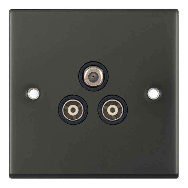1 Gang F-Type Satellite + 2 Gang TV/FM Coaxial/Aerial Sockets Isolated Black Insert Selectric TV Points Dark Bronze