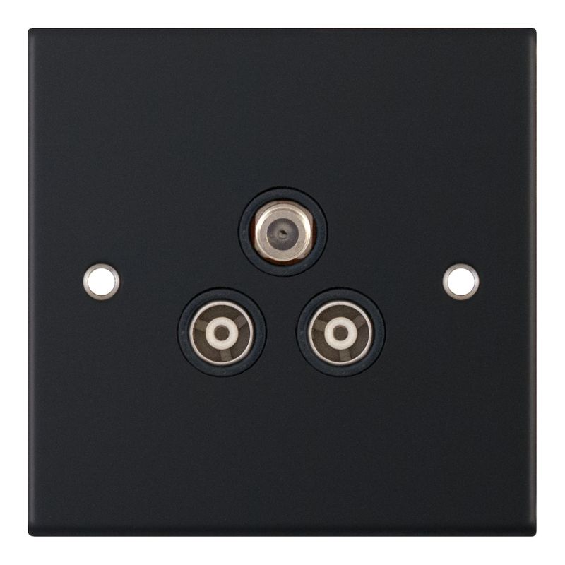 1 Gang F-Type Satellite + 2 Gang TV/FM Coaxial/Aerial Isolated Selectric Sockets Matt Black