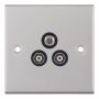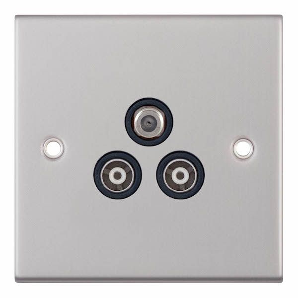 1 Gang F-Type Satellite + 2 Gang TV/FM Coaxial/Aerial Sockets Isolated Black Insert Selectric TV Points Satin Chrome