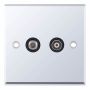 1 Gang F-Type Satellite Socket + 1 Gang TV/FM Coaxial/Aerial Socket Isolated Black Inserts Selectric Sockets Polished Chrome