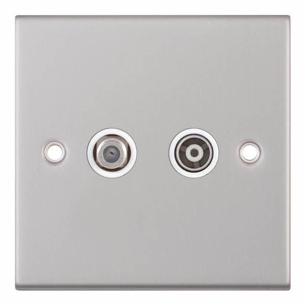 1 Gang F-Type Satellite Socket 1 Gang TV/FM Coaxial/Aerial Socket Isolated Selectric Sockets Satin Chrome