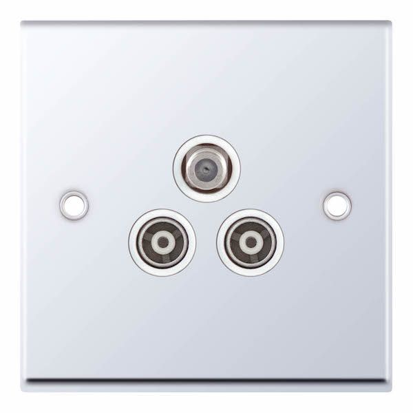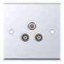 1 Gang F-Type Satellite Socket + 2 Gang TV/FM Coaxial/Aerial Socket Isolated Selectric TV Points Polished Chrome