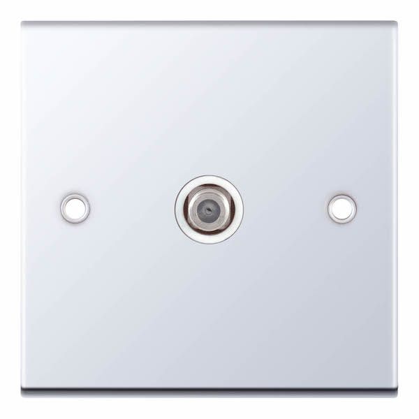 1 Gang F-Type Satellite Socket White Insert Selectric Sockets Polished Chrome