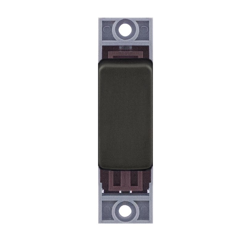 This is the Selectric 1 Gang Intermediate X-Rated Module in Dark Bronze. X-rated for fluorescent and inductive loads, it is designed for lighting circuits where higher inrush currents may occur, ensuring reliable and long-lasting performance. Suitable for use with Selectric 7MPRO modular plates, it allows for flexible, custom switching configurations, particularly in multi-way lighting circuits requiring intermediate control. The dark bronze finish provides a rich, contemporary look, and a minimum back box depth of 16mm is required for installation.