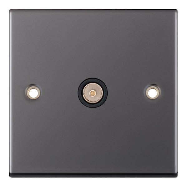 1 Gang TV/FM Coaxial/Aerial Socket Black Insert Selectric TV Points Black Nickel