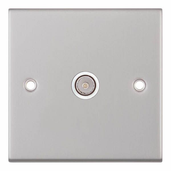 1 Gang TV/FM Coaxial/Aerial Socket White Insert Selectric TV Points Satin Chrome