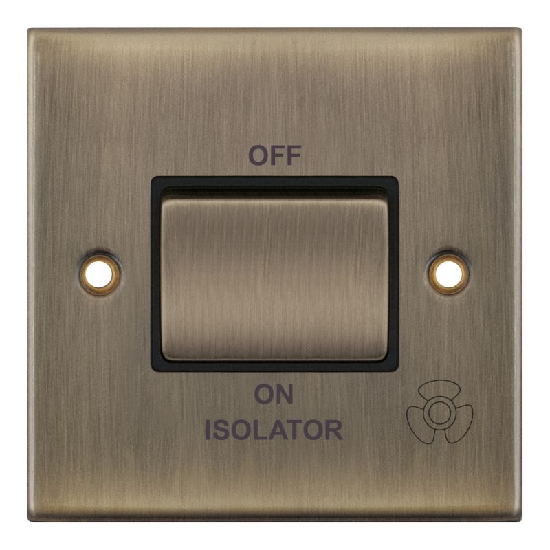 This is the Selectric 10 Amp 3 Pole Fan Isolator Switch in an Antique Brass finish with black inserts. ASTA approved and X-rated for fluorescent or inductive loads, it is suitable for fan isolation and other lighting applications involving fluorescent or inductive loads. The switch features a matching metal rocker for a coordinated appearance and, as antique brass is finished by hand, minor variations in colour are to be expected. A minimum back box depth of 16mm is required for installation.