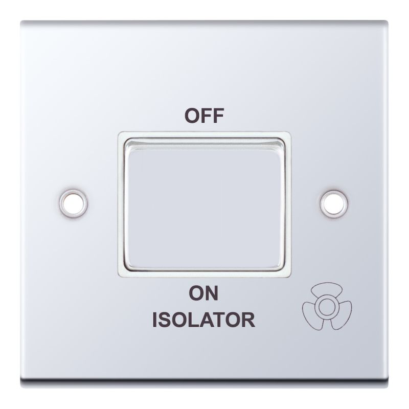 10 Amp 3 Pole Fan Isolator Switch X-Rated with White Insert Selectric Fan Isolator Switches Polished Chrome