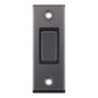 The Selectric 10 Amp 1 Gang 2 Way Architrave Switch features a slim black nickel finish with a matching metal rocker and black insert. X-rated for fluorescent or inductive loads, this narrow-profile switch is designed for tight spaces and integrates with the wider Modular and Euro Media range. It requires a minimum back box depth of 16mm.