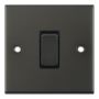 The Selectric 10 Amp 1 Gang Intermediate Switch features a dark bronze finish with a matching metal rocker and a black insert. It is ASTA approved and X-rated, ensuring it is suitable for fluorescent or inductive loads.
