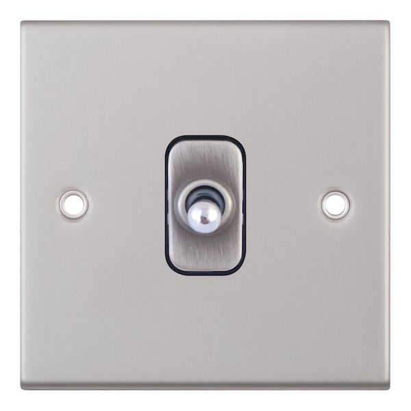 The Selectric 10 Amp 1 Gang Intermediate Toggle Switch in satin chrome with black insert combines classic toggle styling with reliable performance. Designed for intermediate switching circuits, it allows lighting to be controlled from three or more locations. With a sleek, modern finish, it requires a minimum 25mm back box for installation.