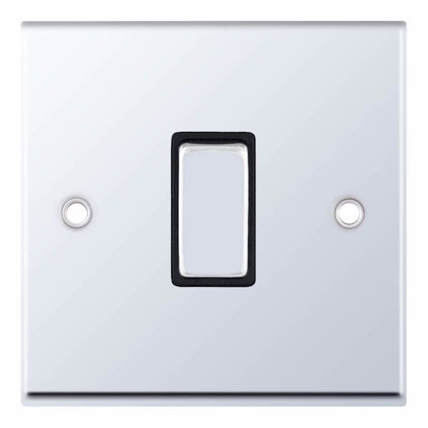 This is the Selectric 10 Amp Plate Switch 1 Gang 2 Way X-Rated in Polished Chrome with a Black Insert. ASTA approved for quality and safety, it is designed for reliable switching in lighting circuits and can be used in two-way switching applications, allowing a light to be controlled from two locations.