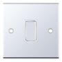 The Selectric 10 Amp 1 Gang 2 Way Plate Switch in polished chrome with white insert combines a sleek, contemporary finish with reliable performance. ASTA approved and featuring a matching metal rocker, it is X-rated for use with fluorescent or inductive loads, ensuring dependable operation. Suitable for a range of residential and commercial applications, it requires a minimum 16mm back box for installation.