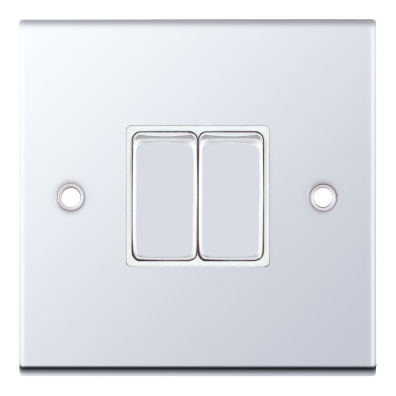 10 Amp Plate Switch 2 Gang 2 Way X-Rated White Insert Selectric Switches Polished Chrome