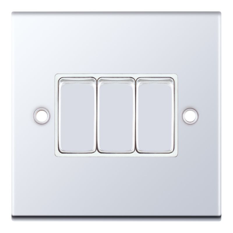 This is the Selectric 10 Amp Plate Switch 3 Gang 2 Way X-Rated Polished Chrome White Insert.