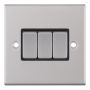 10 Amp Plate Switch 3 Gang 2 Way X-Rated Black Insert Selectric Switches Satin Chrome