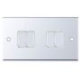 This is the Selectric 10 Amp 4 Gang 2 Way Plate Switch X-Rated in Polished Chrome with White Inserts. ASTA approved for safety and reliability, it is designed for lighting circuits and is X-rated for fluorescent or inductive loads, making it suitable for installations with higher inrush currents.