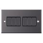 The Selectric 10 Amp 6 Gang 2 Way Plate Switch features a black nickel finish with six matching metal rockers and a black insert. It is X-rated for fluorescent or inductive loads and designed to match the wider Modular and Euro Media range for a consistent aesthetic. This six-switch unit requires a minimum back box depth of 25mm.