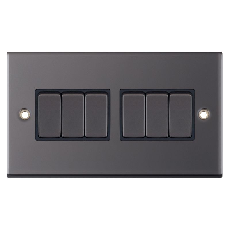 10 Amp Plate Switch 6 Gang 2 Way X-Rated Black Insert Selectric Switches Black Nickel