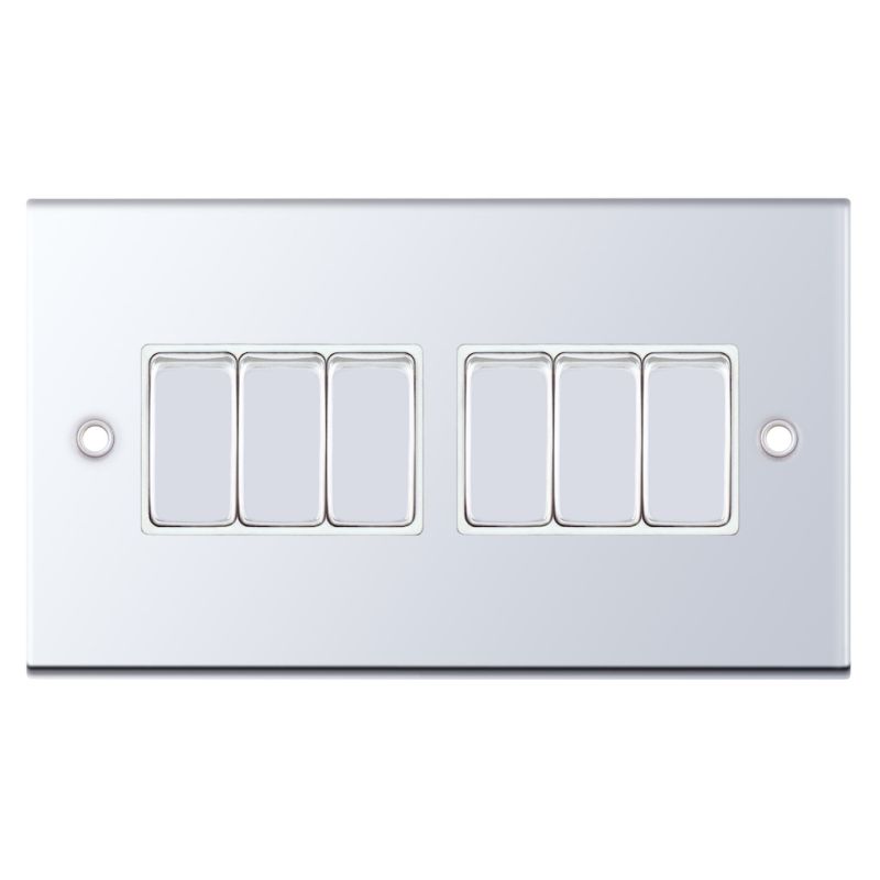 This is the Selectric 10 Amp Plate Switch 6 Gang 2 Way X-Rated Polished Chrome White Insert.
