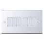 This is the Selectric 10 Amp 6 Gang 2 Way Plate Switch X-Rated in Polished Chrome with White Inserts. Designed for lighting circuits, it is X-rated for fluorescent or inductive loads, making it suitable for installations with higher inrush currents.