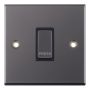 The Selectric 10 Amp 1 Gang Push Switch is finished in black nickel with a matching metal rocker and black insert, featuring the "PRESS" marking. ASTA approved and X-rated for fluorescent or inductive loads, this modular-compatible switch is designed for consistent styling across the range and requires a minimum back box depth of 16mm.