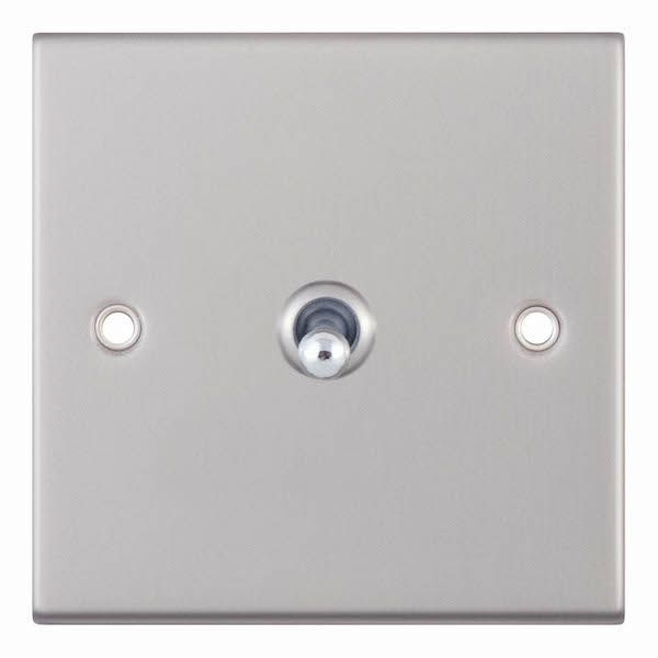 The Selectric 10 Amp 1 Gang 2 Way Toggle Switch in satin chrome with chrome toggle combines classic toggle functionality with a sleek, modern finish. Designed for reliable operation in lighting circuits, it requires a minimum 25mm back box for installation.