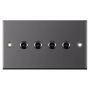 The Selectric 10 Amp 4 Gang 2 Way Toggle Switch features a black nickel finish with four matching toggles and a black insert. Fully compliant with BS EN 60669-1, this quad-switch unit allows for the control of four separate circuits from a single plate. It is built for long-term reliability and includes a 5-year plate guarantee.