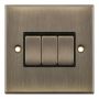 10A Plate Switch 3 Gang 2 Way X-Rated Black Inserts Selectric Switches Antique Brass