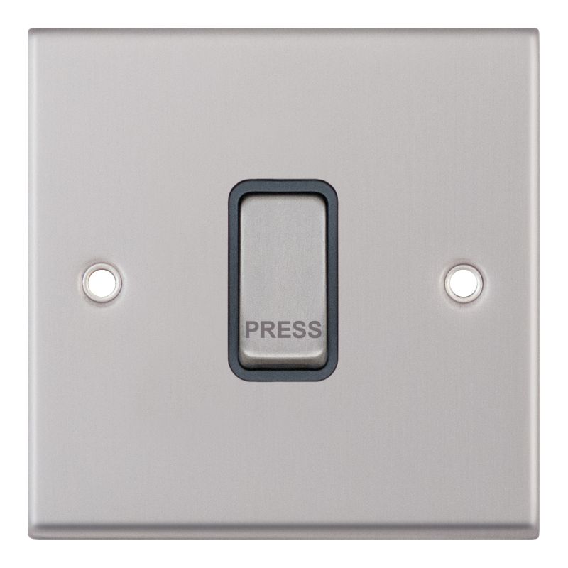 10A Push Switch 1 Gang X-Rated “PRESS” Grey Insert Selectric Switches Satin Chrome