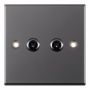 The Selectric 10 Amp 2 Gang 2 Way Toggle Switch features a black nickel finish with two matching toggles and a black insert. Designed for controlling two separate circuits from one location, it integrates with the Modular and Euro Media range for a consistent aesthetic across all fittings. This unit requires a minimum back box depth of 25mm.